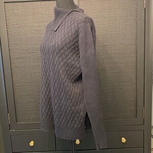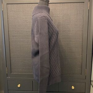 Lands’ End Split Neck Cable Knit Large Tall 14-16 Black 100% Cotton Sweater, 28” shoulder to hem, 20.5” pit to pit.