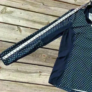 Lands End Sport stretch women’s 1/4 zip pullover, classic navy blue with white polka dots, size 10 Tall. This pullover is in great condition without rips, stains or snags