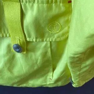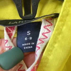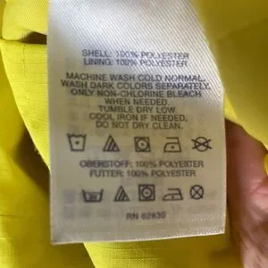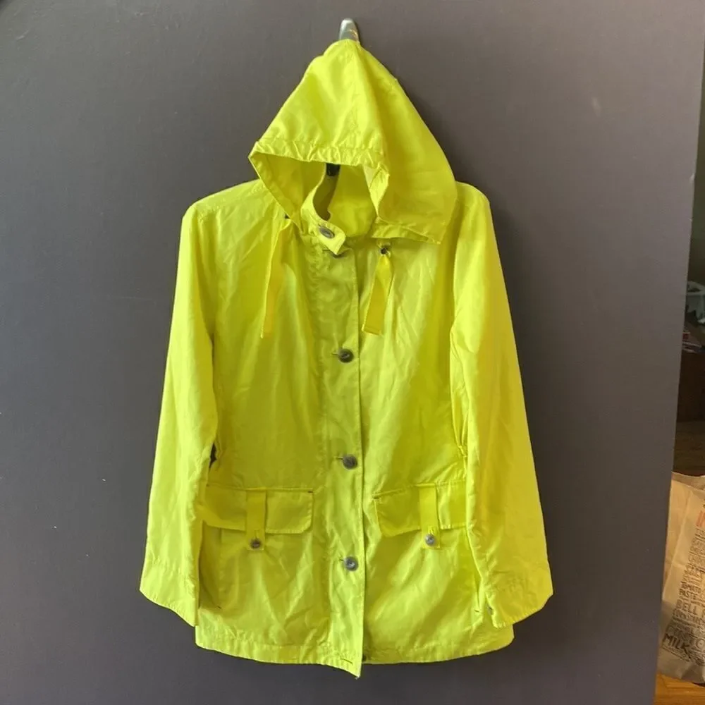 If this doesn’t pull you out of the winter blues I don’t know what will! Perfect for Spring. Unlined jacket from Land’s End. Hood with full front zip and buttonsPockets. Cinch waist with internal cinch pulls inside. Excellent condition. No stains or rips.
