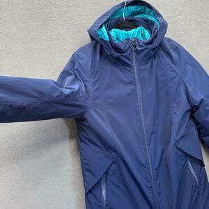 Lands End Squall 3 in 1 Hooded Longline Winter Jacket Womens M 10/12 Blue