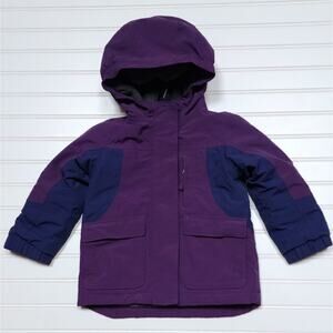 Lands End Squall Insulated Winter Parka Jacket/Coat, size 3T, purple and navy, wind and waterproof, front pockets that have top and side entry and has a zippered chest pocket, adjustable toggles to adjust waist, has the Grow-A-Long sleeves that have not been used yet, fleece lined snow guards with thumbhole in sleeve cuffs, temperature rating warmest -4 to +27, excellent like new condition.