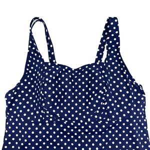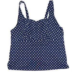 Lands’ End Square Neck Navy Blue Polka Dot Underwire Tankini Swim Top Size 18W