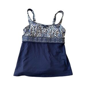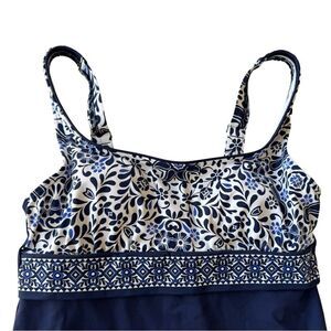 Lands' End Square Neck Tankini Underwired Blue Medallion Swim Top Size 4 NWOT