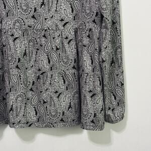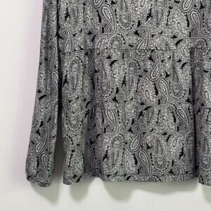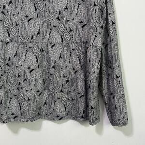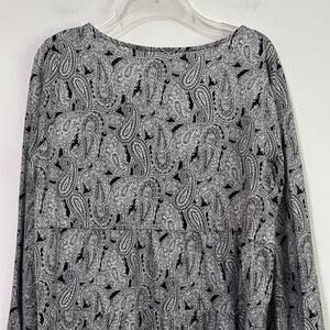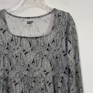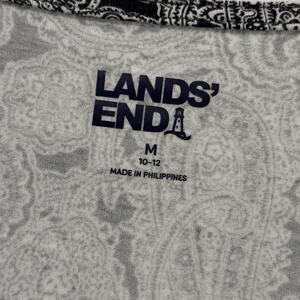 Lands End Square Neck Tee Top M 10/12 Black White Long Sleeve Pullover Stretch