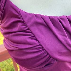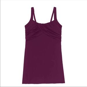 New retro draping bodice underwire Lands End swim tankini dress top, plum eggplant color, adjustable shoulder straps 10 DDD