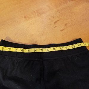 @gilbz29609 The waist is 14" across. There is no logo anywhere on the outside of the pants. Just plain black.