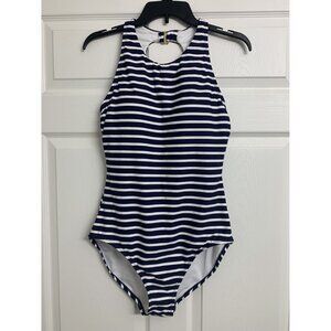 Lands End Striped One-Piece Swimsuit Saylor Style Blue & White Size S