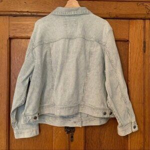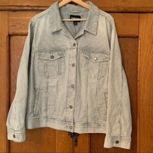 Lands End Striped Oxford Denim Jacket. Size 3X. 2 front pockets. Blue and white stripe. Excellent used condition.