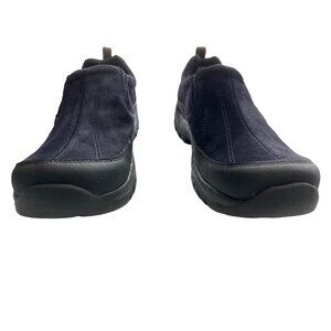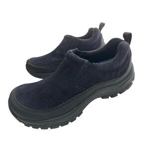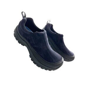 Land’s End Suede Mocs Navy Blue Slip On Shoes Embroidered Size 8.5