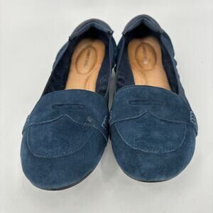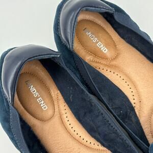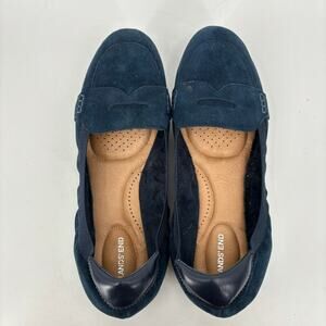 Lands' End Suede Penny Loafer Flat Comfort Shoes Blue Suede Elastic Size 11