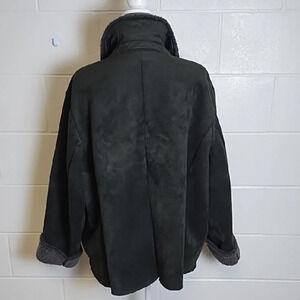 Lands' End Suede Sherpa Barn Jacket with Prominent Collar and Contrasting Cuffs