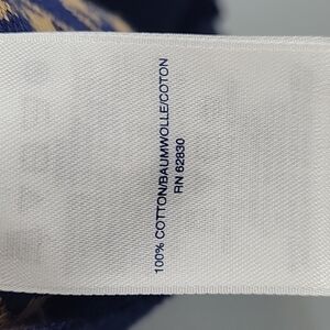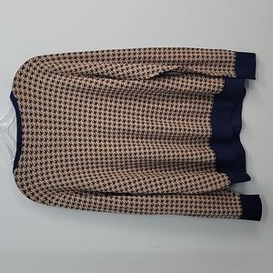 Lands' End button front cardigan sweater. Size Large 14-16. Color: Warm Sienna (beige and navy blue). 100% cotton.