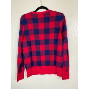 Lands End Women's Supima Cotton Red & Navy Buffalo Plaid Button-Front Cardigan Sweater Medium 10-12