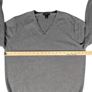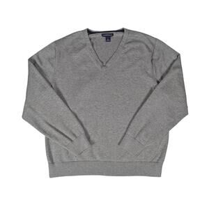 Lands’ End Supima Cotton Sweater Mens L Gray V-Neck Preppy Academia Minimalist