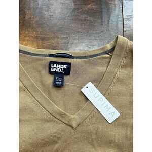 Lands End Supination Cotton Than Brown Long Sleeve V-Neck Sweater Size XLT