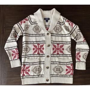 Lands' End Sweater Christmas Cardigan Fair Isle Drifter Shawl Collar Button S