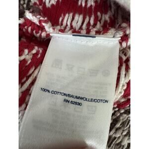Color/Pattern: Cream base with red and taupe/brown Fair Isle snowflake design