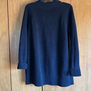 Land's End Knit Sweater Drifter Cotton Mock Turtleneck Tunic Length Loose Fit Black M