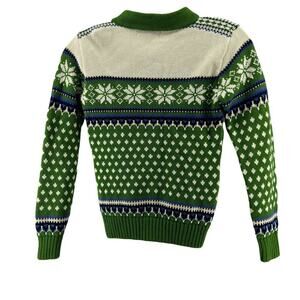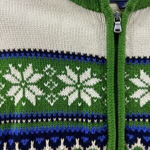 Lands End Sweater Fair Isle Green Cream Blue Full Zip Girls Size Small