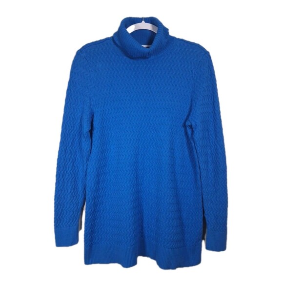 Lands End Sweater Fisherman Turtleneck Womens Large Cable Knit Royal Blue Cotton