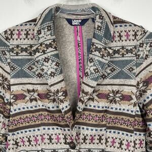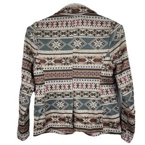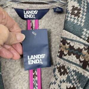 Land's End Sweater Fleece Blazer Women Small Fair Isle Tribal Casual Boho NWOT