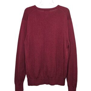 Lands End Sweater Mens Large Burgundy Supima Cotton V Neck Preppy Pullover