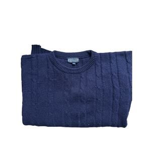 Lands End Sweater Men's XL Navy Wool Cable Knit Scotland Preppy Fisherman