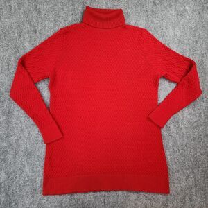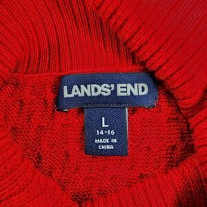 Lands End Sweater Women Large Red Cable Knit Long Sleeve Turtle Neck Casual Soft