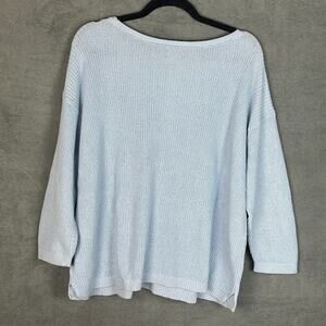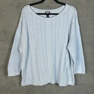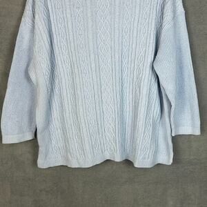 Lands End Sweater Womens Extra Large Blue Drifter Cable Knit Fisherman Coastal