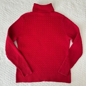 Lands End Cable Knit Turtleneck Sweater 100% Cotton Red Women's Medium Long Sleeve