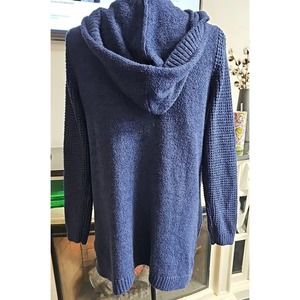 Elevate your winter wardrobe with this cozy blue hooded cardigan from Lands' End. Perfect for the fashionable woman who loves comfort, this pre-owned sweater is made of soft fuzzy material that feels like a warm hug. With convenient pockets and an open front design, this sweater is perfect for layering. Ideal for women's size small 6/8, this regular fit cardigan is a must-have item for any fashionista. The exquisite blue color adds an elegant touch, making it perfect for any occasion. Get ready to stay warm and stylish this winter with this Lands' End sweater.