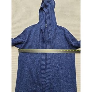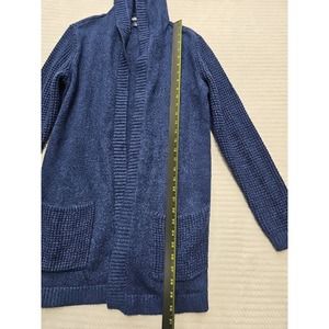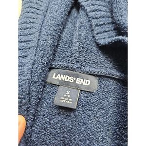 Lands End Sweater Womens Small 6/8 Blue Hooded Open Front Fuzzy Pockets