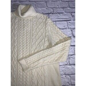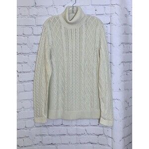 Lands End Sweater Womens X-Large 18 Cable Knit Turtleneck Ivory Pullover