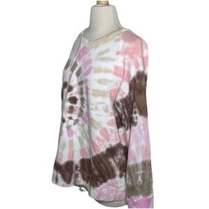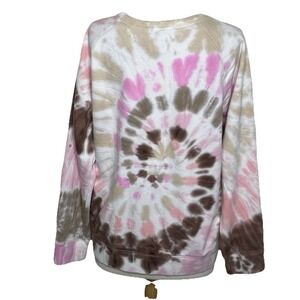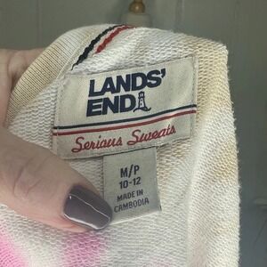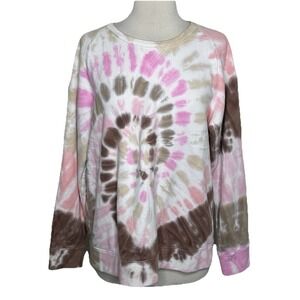 Lands End Sweatshirt Women M 10-12 Serious Sweats Multi Swirl Tie Dye Brown Pink