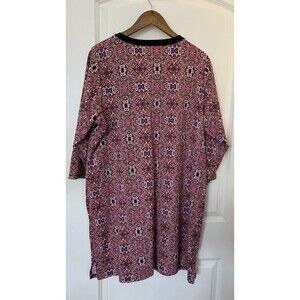 Lands End Swim Cover Up Tunic Dress 1X Plus Stretch 3/4 Sleeves Sun Protection Vacation Beach Resort