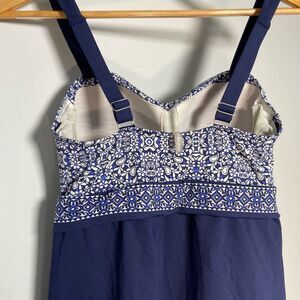 Lands End Navy Blue White Swim Dress Underwire Modest Coastal Grandma Beach Vacay