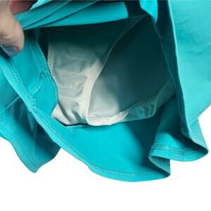 This is a pair of Lands' End Quick-Drying Swim Shorts with Tummy Control. They are also Chlorine-Resistant, so will not fade over time. They have been very gently worn and are in EXCELLENT condition. They feature a brief liner on the inside and no pockets. The inseam is rather short. These would be great for any water sports, or even for running. The shorts are a Women's Size 12 Petite. I am including a bonus tankini top that has the same scuba blue color in the stripes to match the shorts. It is unpadded, and is a size XL.