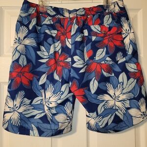 Lands End Swim Shorts Size Medium Floral Tropical Red Blue Patriotic 4th