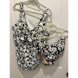 Lands End Swim Suit 2 Piece Bottoms 20W Top 24W Black White Adj. Straps Underwir