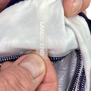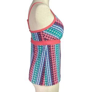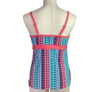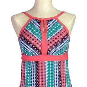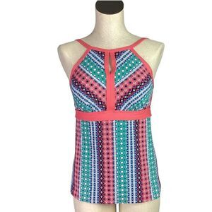 Lands End Swim Tankini Top Womens 8 Orange Blue Geometric Keyhole High Neck