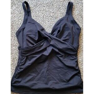 Lands' End Swim Top Black 14 DD Wrap Front Tankini (L) Solid Underwire S74