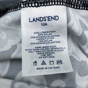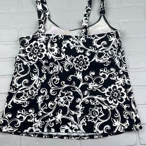 Lands End Swim Top Women 12A Black White Floral Bra Pads Wide Tankini Boho Beach