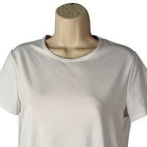 Lands End Swim Top Womens Small 6-8 White Tie Front Short Sleeve Blouson UPF 50