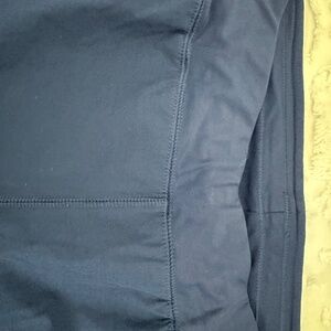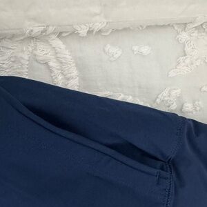 Brand new, never-worn navy blue pull-on swim trunks with a built-in panty and pockets.