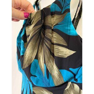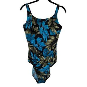 Lands End Swim Women 12 Blue Floral One Piece Feminine Preppy Tropical Summer
