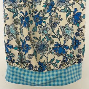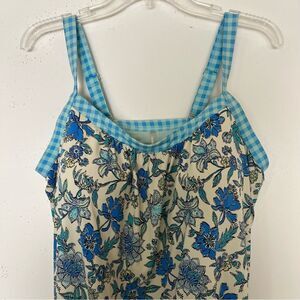 Lands’ End Swim Top 14 DD Tankini Modest Padded Bra Blue Floral Check Plaid Swimsuit EUC