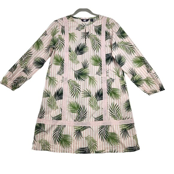 Lands' End Swimsuit Cover-up Dress Size S/P 6-8 Pink Green Palm Stripes Cotton