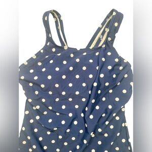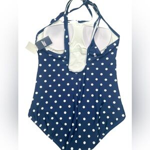 Lands End Swimsuit One Piece Womens size M and XL Navy Polka dot full coverage