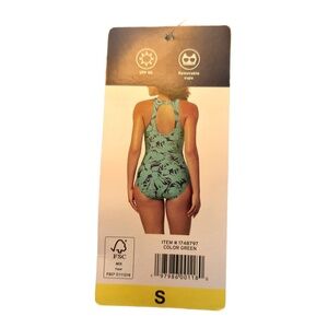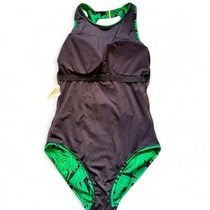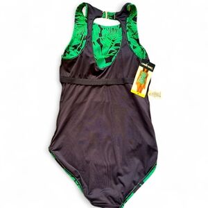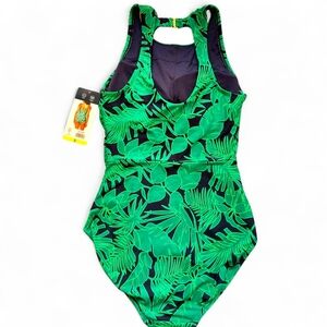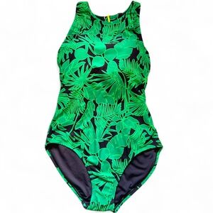 Lands' End Swimsuit Small Green Purple Tropical OnePiece Sleeveless High Neck