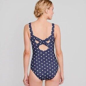 Lands’ End Swimsuit Sz 12 Carmela Blue White Polka Dot New